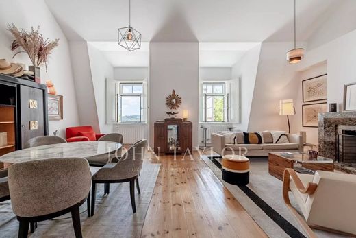Spread across two expansive floors, this elegant four-bedroom duplex is ideally situated in Lisbon’s sought-after Santos neighborhood. Boasting uninterrupted views of the Tagus River and the iconic Museu Nacional de Arte Antiga, the property combines timeless architectural charm with modern comfort.