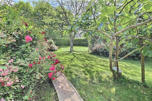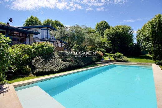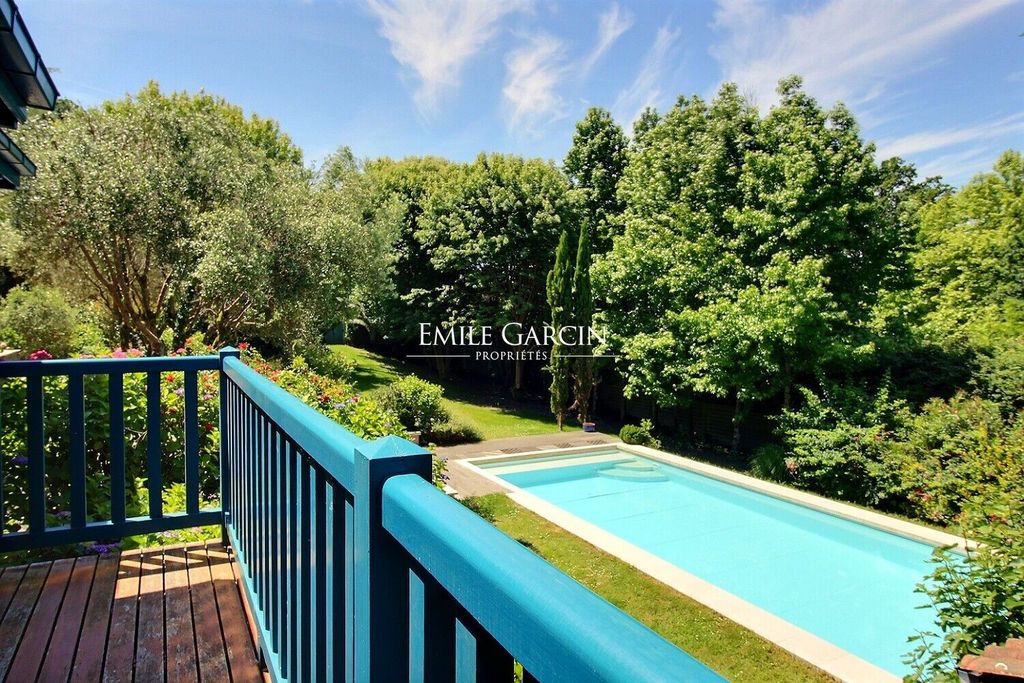 This beautiful property will delight all lovers of gardens and beautiful stone buildings. Located in the centre of Arcangues, with views of the golf course, it comprises a 290 sq.m house, an outbuilding for guests and a large garage, all sitting on 2,430 sq.m of private grounds planted with trees and flowers. Its beautiful stonework, open beams and generously sized rooms lend it a holiday feel. The ground floor consists of a 90 sq.m living area with fireplace and high ceiling backing onto the terraces and garden, as well as two large master suites backing onto private terraces. Upstairs, you will find a third suite and a large mezzanine lounge, which could be converted into additional bedrooms or a dormitory. Lastly, the 30 sq.m guest house presents a fourth suite, a children's playhouse and a large garage (170 sq.m). A perfect family home. Guaranteed love at first sight.