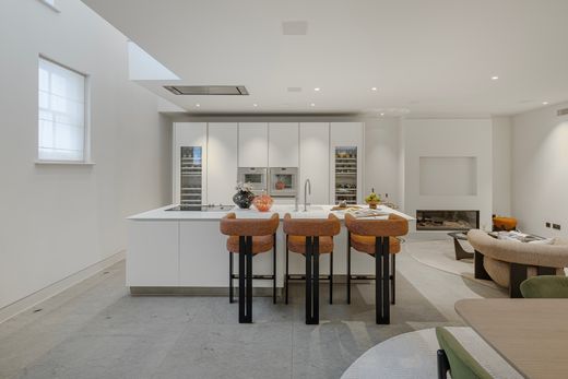 Perfectly styled and situated to suit those looking for a luxury property in the heart of prime central London, this recently renovated contemporary mews home is filled with high-quality features and bespoke touches. The house spans four floors, with the main living areas being the open-plan Gaggenau kitchen and dining room on the lower ground floor, complete with an attached utility and guest cloakroom. The more formal reception room, featuring a gas fireplace and charming mews views, is located on the first floor. On the ground floor, you’ll find a spacious bedroom, a separate bathroom, and an additional bedroom that can also serve as a home office, along with the garage providing that coveted off-street parking so prized in this area of London. The first floor also hosts an en-suite bedroom, while the second floor is dedicated to a generously sized principal bedroom with a large built-in wardrobe, en-suite bathroom, and a substantial private outdoor terrace. Marylebone is an excellent destination from which to explore and enjoy the sights and attractions of London. Bordered by the two Royal Parks, Regent’s Park and Hyde Park, the neighbourhood is filled with great restaurants, shops, and entertainment venues, as well as seamless transport links to the rest of the city and beyond.