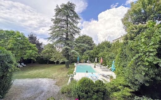 Nostra Immobilier offers you your new cozy nest for sale: Located in the heart of old Bourg-Lès-Valence and 5 minutes from Valence city center, Architect-designed villa of 194 m2 in a magnificent, peaceful setting, on a plot of 1005 m2. This house offers a bright double living room with a sublime wood-burning fireplace. This dual-aspect space, with its kitchen and dining room, connects to two large terraces. A spacious air-conditioned master bedroom on the ground floor with bathroom and terrace. Upstairs, three beautiful bedrooms with balconies, one with its own shower room and toilet, and a bathroom with toilet for the other two. The house also has a basement with laundry room, cellar and an annex room with access to the garden through its bay window. You will discover a magnificent landscaped garden, bordered by a canal and an 8x4 swimming pool area not overlooked. Legal notices: Fees payable by the seller Alur Law Information: Negotiator status: manager Property reference: 202451 Information on the risks to which this property is exposed is available on the Géorisques website Estimated costs between €33,220 and €4,580 per year. Average energy prices indexed as of January 1, 2021 (including subscriptions)