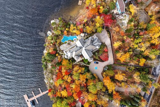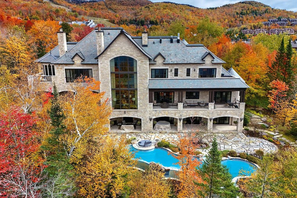 Nestled within a serene private enclave, this breathtaking waterfront Tremblant estate is amongst the most exceptional properties in The Laurentians and stands as a testament to luxurious living. Boasting a stunning architectural design, this magnificent custom built home harmoniously blends modern elegance with the natural beauty of its surroundings. Just moments from the vibrant Tremblant Village and its renowned ski resort, this property offers the perfect balance of seclusion and accessibility. The gated entrance ensures privacy, while the expansive views of the shimmering lake provide an idyllic backdrop for relaxation and entertainment.