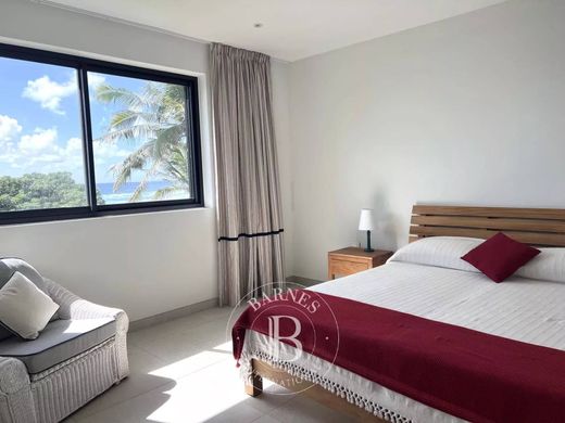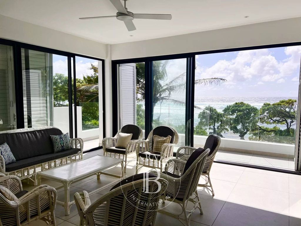 Set within a modern residence, this refined beachfront apartment offers a lifestyle of exceptional comfort by the sea. The apartment opens to an elegant entrance hall leading to a dining and living room with splendid sea views. You will also find a veranda with panoramic views of the waves on the east coast. Enjoy the winter breeze through the plantation shutters, and in the summer, ceiling fans provide great relief.