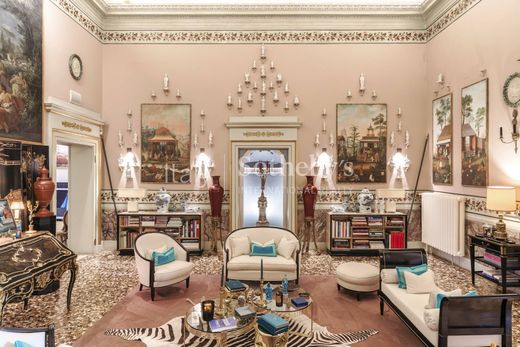 The main rooms of the property, known for having hosted King Vittorio Emanuele II, are enriched with original decorations and frescoes by Gaetano Vacani and Aristotele Ghislandi. Also accessible by elevator, the entrance is marked by a wide and bright loggia, connected to the grand monumental staircase of the palace.