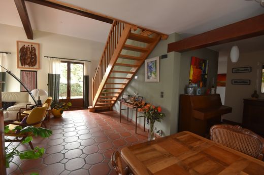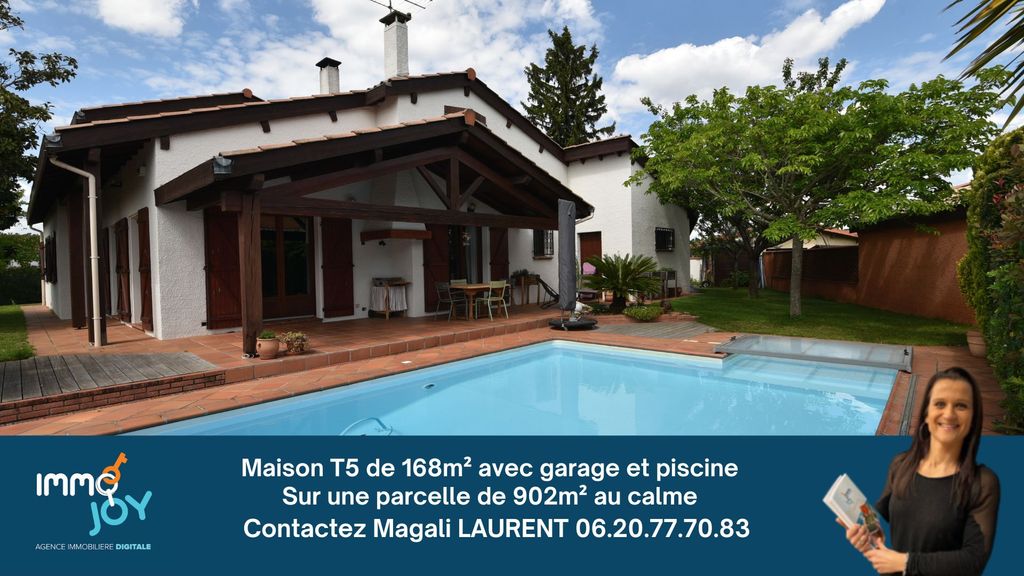 Contact Magali LAURENT, IMMOJOY Fonsorbes from 9 a.m. to 9 p.m. every day, to take you to visit this traditional house of 168m2 built in 1984 on a plot of 902m2, fully fenced and planted with trees, decorated with a beautiful swimming pool of 5m x 10m covered by a motorized shelter. Located in a small, very quiet cul-de-sac close to the town center of Cugnaux with all its amenities, this property includes a welcoming entrance of 8m2 with cupboard, a separate toilet with washbasin and window, 2 spacious bedrooms of 23 and 12m2, a bathroom/shower with double sink of 9m2, storage and window. The living room of 38m2 with its high ceiling height overlooked by a beautiful mezzanine gives a strong character to this living space, the wood stove installed in 2022 and its facing brick wall give it an exceptional cachet. Finally, its separate fitted kitchen of 13m2 leading to its convivial terrace and its swimming pool with a removable shelter offers access to a well-designed and very functional cellar of 8m2 thanks to all its storage and to a garage of 28m2 with storage space under the roof. At the top of a beautiful wooden staircase, a rochelle of approximately 10m2 and its open office space will welcome you to an intimate place serving 2 very bright attic bedrooms of 13m2 each, a shower room with window, a separate toilet and a dressing room. The undeniable plus points of the property: Underfloor heating and gas boiler. House designed on a 60cm crawl space accessible from the garage. Double-glazed windows replaced. Modern wall covering: paint applied over wallpaper. Reinforced insulation between rafters and plasterboard on the ceiling of the living room/dining room. Well with pump in good working order. Automatic watering. Somfi automated swing gate. Facade renovation redone in 2022. Garden shed built on a concrete slab. Alarm. Underfloor heating and gas boiler. Sidewalks around the entire house. Wood shed. Carport for 2 vehicles. Liner replaced in 2018. Excellent DPE in C. Connected to the TAE. 2024 property tax: 3317?. Montesquieu College and Henri Matisse High School in Cugnaux.
