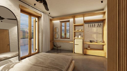 A vertical ownership (the stone house is within city plan area) of 144,04 m2 with three (3) bedrooms and two (2) bathrooms, under floor heating, A/C, solar panels for hot water and heat pump. The layout of each house is developed in two floors, all having sea views to the direction of Paroikia. Private parking is available for each house. The house has top designs with a strong modern Cycladic architectural element.
