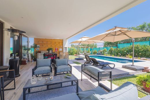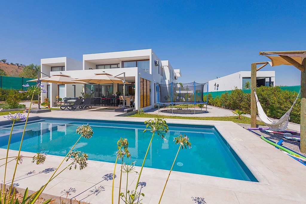 Mediterranean-Style House on a Spacious Lot with Excellent Orientation – 5 Bedrooms, Two En-Suite, Terrace, and Pool First Floor: Double-height entrance hall Spacious living and dining room with access to a covered terrace En-suite bedroom Home office Fully furnished and equipped kitchen with oven, range hood, cooktop, and island breakfast bar. Silestone countertops Guest bathroom Service bedroom with bathroom Second Floor: Glass-paneled staircase Family room with access to a terrace Master suite with terrace access Three children's bedrooms Two bathrooms Exterior: Landscaped garden with automatic irrigation and dry garden areas Covered terrace and swimming pool Covered parking with automatic gate Additional Features: Double-glazed windows throughout Porcelain tile flooring Seven air conditioning units Solar panels