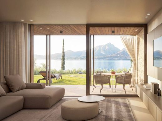 The large glass surfaces, the high-quality materials and the great privacy make this apartment a true haven of well-being on Lake Garda.