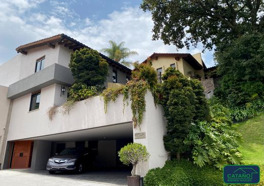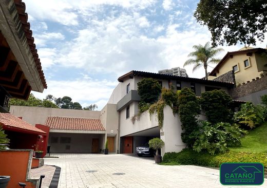 Residence in a horizontal condominium with strict surveillance and security. It features a foyer, an office with access to the garden, a living room with a dining room and a cafeteria that connect to the two gardens and terraces, a closed kitchen with a breakfast bar, and two terraces: one on the living room side with access from the parking lot and a view of the communal garden (approximately 1,500 m2). The other, located off the dining room, opens onto the garden with a barbecue grill and pergola, also with a separate entrance. Upstairs, there are four bedrooms with bathrooms and dressing rooms, a family room, and a security door. The master bedroom has a very large dressing room and a terrace. Downstairs, there is a driver's restroom, a game room, and parking for four cars. Maintenance fees are $8,000 pesos.