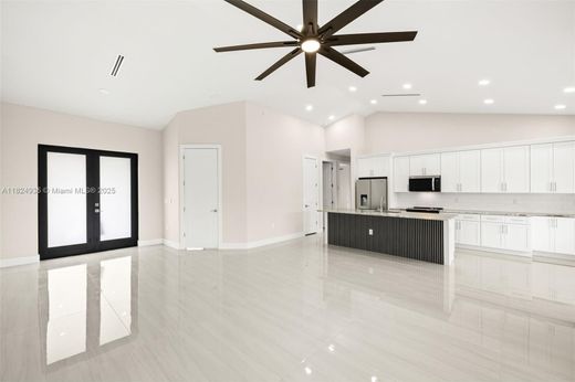 New construction home with a pool, located on 120 ft wide canal with access to lakes, & city water, sewer, & irrigation. The kitchen has granite countertops, large island, soft-close cabinets, & stainless steel appliances. The spacious primary suite offers sliders opening directly to your private screened lanai & pool, as well as two walk in closets. The ensuite bathroom has dual sinks & large walk in tiled shower with a glass door. Other: high ceilings, paved driveway & lanai, hurricane impact windows/doors, 3 car garage, large lanai with pool cage, inside laundry room, tile throughout, ample closets all with shelving, alarm sensors. No HOA. Not in a flood zone. Centrally located just minutes from the Pine Island corridor, parks, Gator Mikes, Sunsplash, and NW library, US-411 & I-75.