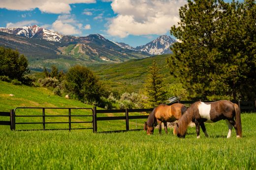 Located on prestigious, pastoral McLain Flats, just minutes to Aspen and Snowmass, this unique 5-acre horse property enjoys gated, end-of-the-road privacy and spectacular views of all 4 ski areas. The original stone house was lovingly restored in 2017 and is exquisitely decorated by the designer owner. Enjoy the open chef's kitchen or relax by the wood-burning fireplace. The space opens to a generous outdoor living area featuring dining, grill, pizza oven, a decorative waterfall, hot tub, and an ''above it all'' bar perfect for sunset cocktails. There's even a hidden greenhouse and garden for all your veggies and flowers. Adjacent is a second structure; a stylish, contemporary ''barndominium'', completed in 2023, with soaring ceilings that provide natural light, a floor to ceiling fireplace, a loft, quaint patio, and a substantial ''kitchenette''. The 2,000 square foot building can also be used as a gym, home office, art studio, media room, or as a garage and shop for your car collection or toys. The acreage is ideal for horses; there are five paddocks with auto-waterers, a tack room and storage. 15 shares of Salvation Ditch are included, and the underground irrigation system keeps the grounds and dozens of protective trees lush and green. And if that's not enough, the offering also includes approvals for a third structure! Included plans envision a 4,000 square foot main home set above the stone house and barn on a flat hilltop overlooking town. TDR's can be used for additional FAR. Once complete, you'll have the mountain ''ranchette'' you've always dreamed of.