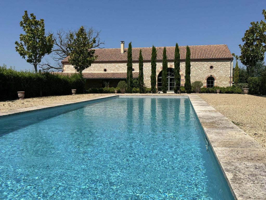 Nestled between the charming towns of Condom, Lectoure, and Agen, this magnificent stone property – a former wine storehouse – was entirely renovated in 2021 by a renowned local company. It offers 445 m² of living space at the heart of a beautifully landscaped 1-hectare garden.