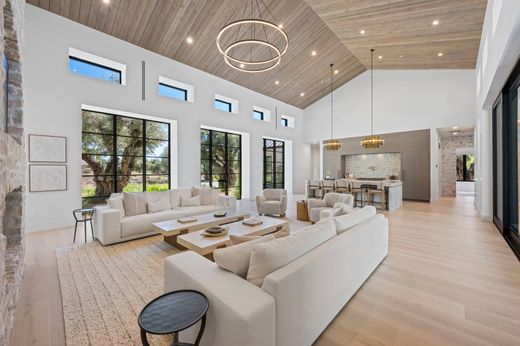 SPECTACULAR SINGLE STORY ESTATE ON 2 BEAUTIFUL ACRES BEHIND THE GATES OF LAGO VISTA. This brand new masterpiece by Huzo Development Group has been designed and curated to perfection with natural stone and an abundance of warm wood materials to create the ultimate living experience. The sprawling single story floor plan boasts 3 ensuite bedrooms, home office, secondary flex entertaining room and an attached 1,025 sq. ft. in law quarters with a 4th ensuite bedroom. The primary suite is a luxury retreat with a bath that rivals any 5 star hotel. The dreamy kitchen is the perfect blend of modern amenities and top of the line appliances with the ideal gathering place around the massive island. The secondary back kitchen is an entertainer's dream! The floor to ceiling fireplace and expansive Sierra Pacific sliding doors accent the great room that blends seamlessly with the outdoor living spaces that also lead to pool bath and custom sauna. The rear yard is truly a resort oasis with sparkling pool, spa & outdoor kitchen all overlooking private and serene open space. There is a 5 car garage including an RV garage that is perfect for all of the toys. Owned solar! Don't miss this opportunity to own your own private 2 acre estate in the heart of El Dorado Hills.
