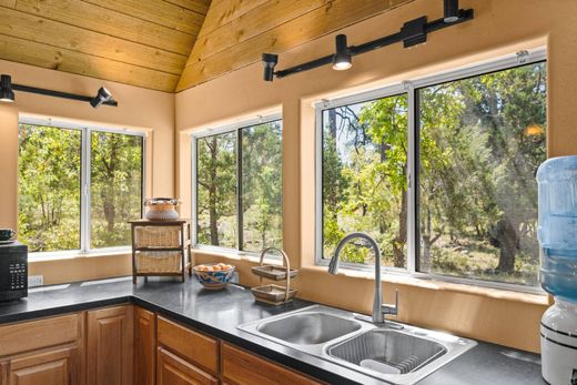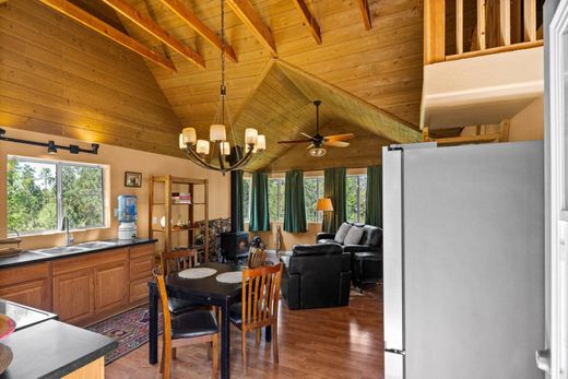 Escape to this serene mountain retreat atop Mingus Mountain (not in Jerome), nestled on leased Forest Service land and surrounded by tall pine trees. This beautifully rebuilt cabin (from the foundation up in 2010) features tongue-and-groove vaulted ceilings, two bedrooms including a cozy loft, and an interior bath with shower and composting toilet. Thoughtful recent (2023) upgrades include rodent-proofing, added insulation, and a new roof. A water tank with pump services the cabin, and there's also an outhouse, shed, and two fire pits. All furnishings and an off-road vehicle convey. Enjoy peace, quiet, and nature, with nearby lake access and wooded trails just steps away! This is a nature lover's paradise!