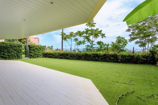 The main living area is bathed in natural light thanks to large floor-to-ceiling windows and opens seamlessly onto the terrace and garden. Three generous bedrooms, each with direct outdoor access, allow you to fully enjoy the Mediterranean climate and breathtaking views.