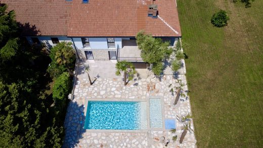 Located on a peaceful, green street near Umag, just 300 meters from the sea, this fully renovated property offers 372 square meters of living space on a landscaped plot of 555 square meters. The first floor provides sea views, and the property reflects a perfect blend of traditional Istrian architecture and modern energy-efficient solutions.
