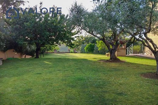 Rome – Talenti - Casal Boccone – In the splendid setting of Talenti Park, within the elegant "Consorzio Parco della Cecchina" complex, with 24-hour concierge and security service, we offer for sale a prestigious corner villa with an exclusive 1,000 sq m garden. This is a rare opportunity for those seeking a private and peaceful setting. The villa boasts spacious outdoor and indoor spaces designed to ensure maximum comfort for both family and friends. It is spread over three levels as follows: Ground Floor: Large and bright double living room overlooking the patio, built-in kitchen, and bathroom. A comfortable internal marble staircase leads to the upper floors. First Floor: The current layout consists of two large bedrooms, two modern and elegant bathrooms with windows, and two balconies offering relaxing views of the private garden. Depending on your needs, it is possible to restore the original layout with three bedrooms, two bathrooms, and two balconies. Basement: large, equipped hobby room. The property also includes a garage and a large parking area. The villa's added value is undoubtedly its wonderful garden, unique in the area of this size, which envelops it in all its beauty, alternating a landscape of well-kept green spaces, fruit trees, centuries-old olive trees, paved spaces, and porticos.