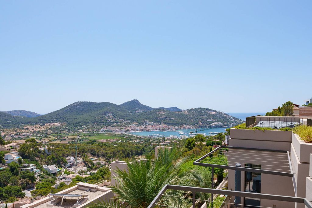 Elegant modern Mediterranean style house with panoramic views of the port of Andratx and the Sierra de Tramuntana.