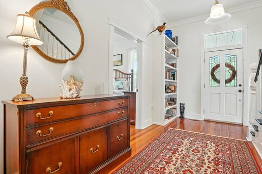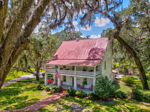 Welcome to Laughinghouse Manor – A Southern Retreat Full of Charm, Comfort, and Opportunity. Nestled under the shade of ancient live oaks and draped in Spanish moss, Laughinghouse Manor is a lovingly restored 1895 farmhouse set on 3.48 private, gated acres. This enchanting estate offers the perfect blend of Southern charm, timeless elegance, and modern comfort—making it an ideal home, event venue, or short-term rental retreat. As you arrive through the brick-lined driveway, you're greeted by double front porches that hint at the warmth and hospitality found within. Inside, you'll find original heart pine floors, a cozy family room with a fireplace, a formal dining room also with a fireplace, and a sunroom perfect for relaxing with a book or morning coffee. The country-style kitchen is the heart of the home—featuring a large center island with gas cooking and plenty of space for gathering with loved ones. The main-level primary suite offers easy access to the pool and a spa-like en suite bath with marble floors, all-white subway tile, and a double vanity. Upstairs, four more spacious bedrooms and bathrooms provide room for everyone, while the third floor boasts a large suite with its own sitting and TV area—perfect for guests or multi-generational living. There are five fireplaces throughout the home, all for decorative purposes only and not currently functional. Most of the artwork on the walls will not convey with the house but some of the pieces, as well as the furniture, are negotiable. Step outside to enjoy the saltwater pool with a slide that kids (and adults!) will adore, or cast a line in the private, bass-stocked pond. There's also a charming barn with an 800 sq ft studio apartment above—complete with a full bath, new A/C, and its own septic system, ideal for guests or extra rental income. The property has been meticulously updated with new HVAC systems, septic, foundation supports, well, lighting (interior and exterior), appliances, fencing for pets, and so much more. Whether you're looking to host weddings under the oaks, create unforgettable Airbnb experiences, or enjoy a magical home steeped in character and comfort, Laughinghouse Manor delivers. With over $100,000 in Airbnb and event revenue since 2022, and furnishings negotiable for a turnkey transition, this is more than a home—it’s a rare opportunity to own a piece of Southern hospitality at its finest. Owners took off ABNB and Event sites to place on the market, and they continue to have calls for small weddings, small family reunions, and birthday parties, repeat customers. It's an amazing homeplace where people come and feel the Love this property has to offer.