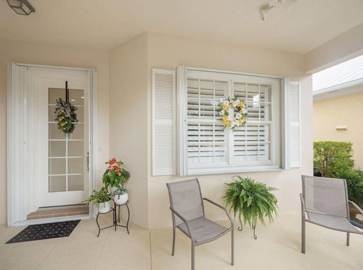 Welcome to this beautifully maintained 2 bedroom, 2 bath home with a spacious den and inviting great room, located in the sought-after, gated golf course community of The Florida Club. This residence features an upgraded kitchen with sleek finishes, tile flooring throughout, and built-in bookshelves for added character and storage. The split floorplan offers comfort and privacy, while the fenced backyard is perfect for pets or outdoor relaxation. Accordion shutters provide peace of mind during storm season, and the 2-car garage offers ample space for vehicles and storage. Enjoy resort-style living with a low HOA that includes full lawn and landscape care, cable TV, a heated community pool, and tennis/pickleball courts. The Florida Club boasts a scenic pay-as-you-play 18-hole golf course--