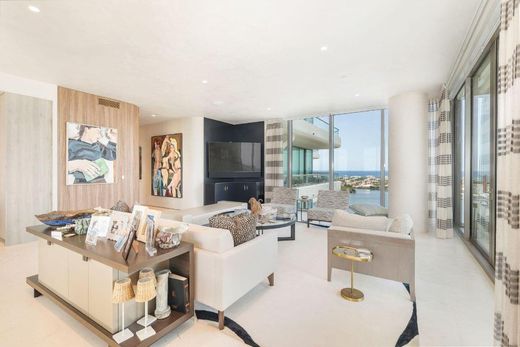 Spectacular La Clara apartment with majestic views. Meticulously renovated and decorated, upgrades include full stone second and third bedroom baths, control audio/video system throughout, automatic blinds and all vents flush throughout the unit. Most walls upgraded to level 5 and then Venetian plastered, while others have high end wallpaper. Primary bedroom closets upgraded with high end wood-built ins. Permanently unobstructed views to the East, West and South. Wonderful location close to Palm Beach, offered unfurnished but much of the furniture is available separately.