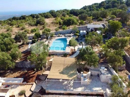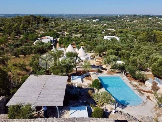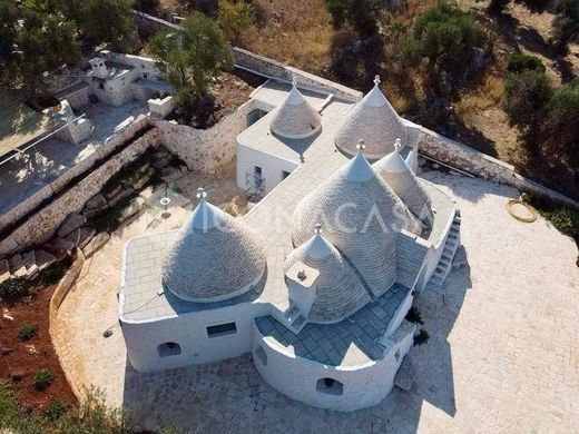 Ref. O407 Recently renovated 121 sqm trulli complex with swimming pool and sea view land for sale in Ostuni, in the immediate vicinity of the San Biagio sanctuary on the hills, precisely in the La Chiusa district. We offer a six-cone trulli complex comprising an entrance hall, a living room/kitchen with an alcove, a master bathroom, and two bedrooms with walk-in closets and en suite bathrooms. The building also includes a boiler room. The villa is complete with an Imhoff tank and an artesian well. A fantastic swimming pool with panoramic views completes the property. The land, owned exclusively, measures 4,785 sqm, complete with parking area and a relaxation area with stone seating and sofas. We propose a complex of trulli of six cones composed of an entrance hall into the living room kitchen complete with alcove, master bathroom and two bedrooms complete with walk-in wardrobe and en suite bathroom. The building is complete with a boiler room. The villa is complete with imhoff tank and artesian well. A fantastic swimming pool with panoramic views completes the solution. The land, of exclusive ownership, is 4785 sqm complete with parking area and relaxation area with stone seating and sofas. INTERIOR: The trulli complex has been recently renovated. The fixtures have thermal break, the floor is in spatulated concrete. There is an alarm system. The heating is autonomous under the floor, with independence for each room. The systems are recently installed. English: The trulli complex has been recently renovated. The window and doorframes are thermal break, the floor is of spatulated concrete. There is an alarm system. There is independent underfloor heating, with independence for each room. The systems are recently installed. EXTERIOR: The land, which is exclusively owned, is 4,785 square meters and is ideal for lunches or dinners with friends. LOCATION: The villa is located on the renowned hills of Ostuni. The height of the hill guarantees a unique view of the entire Itria Valley and the sea. It is about 6 km from the town center. FOUR GOOD REASONS TO CHOOSE THIS PROPERTY: Prestigious location, Sea view, Swimming pool, Typicality of the construction