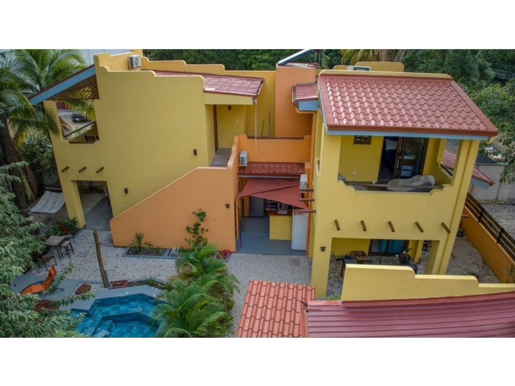 Rental Complex with Pool in Playa Potrero – High Profitability 250m from the Ocean Asking Price: $790,000 USD Tropical Realty presents this exclusive investment property in the heart of Playa Potrero, Guanacaste, just 250 meters from the beach. Designed to operate as a highly profitable hospitality business, this property is ready to generate income from day one through Booking.com, Airbnb, and direct bookings. Located on a 555 m² lot, the property offers 260 m² of construction distributed across several fully equipped accommodation units, a comfortable guesthouse, a pool, common areas, a laundry room, parking, and tropical-style architectural details that attract national and international tourists. Highlighted features: 4 rental bedrooms, each with a private bathroom, air conditioning, TV, mini-refrigerator, and a terrace overlooking the pool. Detached guesthouse with 2 bedrooms, 2 bathrooms, a living room, an open kitchen, and a covered terrace. 2 additional bedrooms upstairs with private bathrooms and a shared balcony. Shared kitchen, machine room, laundry room, and well-maintained outdoor areas. Key Property Facts: Land Area: 555 m² Construction: 260 m² Year of Construction: 2021, expanded in 2023 Utilities: Water $70, Electricity $500 (high season), Internet $110, Annual Taxes $900 Estimated Income: $282,000 annually Projected Return: 14% ROI Average Monthly Income: $3,200 This property represents a unique opportunity for investors looking for a well-established lodging business or a family residence with the potential to generate income in one of the most attractive areas of the Costa Rican Pacific, just minutes from Playa Flamingo and Las Catalinas.