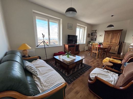 LOSLIER IMMOBILIER - Fewer fees, more services. If you are interested in this property, contact your advisor Stéphanie Léguillon EI at 06 27 54 63 02 or by email: s.leguillon.li@gmail.com, real estate sales agent, registered with the Coutances RSAC under number 532 486 495, In Granville, close to all amenities, with sea views and Saint Paul Dwelling house consisting of: On the ground floor: living room, kitchen, veranda, bedroom, bathroom, WC, cellar On the 1st floor: a landing converted into a bedroom and 2 bedrooms In the basement: a bedroom with WC and sink Outside: private garden of 54m2, entrance with videophone, 2 garages, one with cellar and the other communicating with the house, storage room Mains drainage, electric heating, PVC frames with electric shutters. Co-ownership building, low charges Information on the risks to which this property is exposed is available on the Géorisques website: www.georisques.gouv.fr