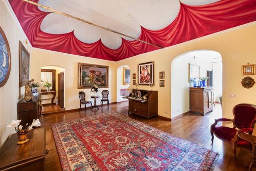 The estate, which belonged to the noble Cosmelli-Battaglieri family, boasts an area of 230 square metres on a single level and a private terrace of 40 square metres overlooking the pedestrian street.