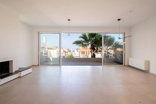 Cozy Apartment with Sea View spreads on 111 s.m. spacius living room and kitchen with 2 bedrooms and 2 bathrooms. has a fireplace and fanqoil with Heat pump for Heating and Cooling. It has a Solar Panel has an outdoor covered parking. Spacius verandas. The building has elevator. The Apartment has been completely reconstructed in 2025 and is ready to welcome its new owner. The fooring is tiles and wood in the bedrooms.