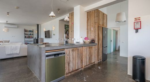 An open wooden staircase ascends to the 4th ensuite bedroom. Terrace doors slide open onto the roof terrace, with amazing 180º views.