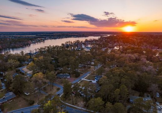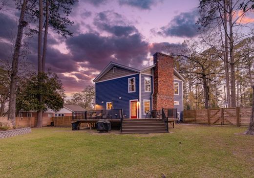 Offered up to mostly furnished, this extensively upgraded home in the heart of Trent Woods delivers comfort, character, and a rare move-in-ready opportunity on a spacious half-acre lot. With over $200,000 in thoughtful renovations, this 3-bedroom, 3-bath property blends stylish updates with functional living and inviting spaces indoors and out. The showpiece kitchen features custom navy cabinetry, quartz countertops, stainless steel appliances, modern hardware, and sleek lighting — opening seamlessly to the dining area and living space anchored by a dramatic whitewashed brick fireplace and rich hardwood floors. The main floor layout is open yet cozy, ideal for both entertaining and everyday life. Upstairs, a generous second living area offers flexibility for a media room, home office, or lounge space — providing separation and comfort for today's evolving lifestyle needs. All three full bathrooms have been updated with fresh finishes, including modern vanities, tile work, and fixtures. The bedrooms are clean, comfortable, and offer plenty of natural light, ready for your personal touch. Step outside to a composite deck with black railings, perfect for dining or relaxing. The fully fenced backyard features a manicured lawn, mature trees, and a matching shed for storage, hobbies, or workshop use. A newly poured curved driveway completes the polished exterior and enhances curb appeal. Located in a quiet, tree-lined neighborhood close to parks, schools, and all that New Bern has to offer, this is a rare chance to own a home where every major update is already done — with space, style, and value that's hard to beat.