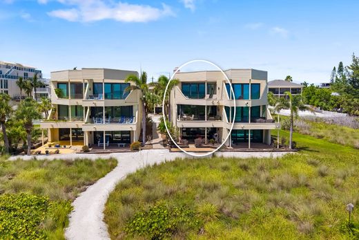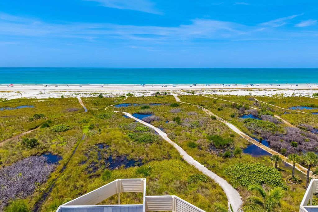 Gulf-front luxury townhome with private beach access on Siesta Key! Soak in the breathtaking, unobstructed views of the Gulf and iconic Siesta Beach from every level of this three-story, turnkey-furnished townhouse-style condominium. Just a short distance from the sand in the intimate, nine-residence enclave of Tiffany Sands, this rare Siesta Key offers blends relaxed beachside living with elegant design and modern comforts. Spanning 2,611 square feet, this three-bedroom, 3.5-bath residence welcomes you with an open-concept main floor that seamlessly connects the kitchen, dining and living areas—all framed by floor-to-ceiling impact-rated sliding glass doors and panoramic Gulf vistas. The living room is anchored by a cozy wood-burning fireplace and enhanced by crown molding, recessed lighting and sleek ceramic tile flooring. Go onto the expansive Gulf-front balcony, an ideal setting for alfresco dining or sunset lounging. The kitchen is stylish and functional, featuring solid-surface countertops, stainless steel appliances, modern cabinetry with pullout shelving, under-cabinet lighting and a breakfast bar for casual meals. Upstairs, the spacious Gulf-front primary suite offers postcard-worthy views, a private balcony, sitting area, double closets and a luxurious en-suite bath with jetted soaking tub, double vanity, separate shower, bidet and two skylights. Two additional guest bedrooms—flexibly configured with a retractable dividing wall—are also on the third floor along with a full guest bath and a well-equipped laundry room. The oversized ground-floor bonus room opens via sliding glass doors to a covered patio just steps from your private beach path. A full bath with walk-in shower was stylishly updated in 2024, making this level ideal for guests, a home gym or media lounge. Additional highlights include a one-car attached garage with extra storage, newer water heater (2024), HVAC (2022), roof and skylights (2017), hurricane shutters and flexibility of 30-day minimum rentals. Just .4 miles from Siesta Village's vibrant shops and dining, and Siesta Beach Park, this exceptional home delivers the ultimate island lifestyle—whether you're seeking a serene personal retreat, a seasonal escape or a savvy investment property.