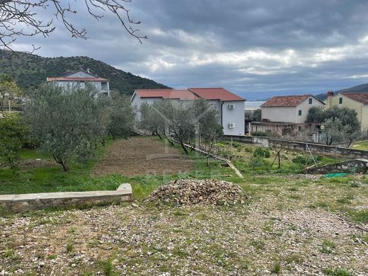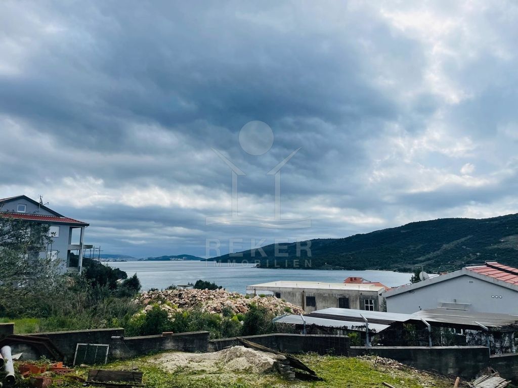 This building plot is located in a quiet place near Trogir - on a gentle hill, away from the main road. The location offers peace, privacy and a special bonus: a beautiful view of the sea. The water can be seen from the first floor, while the first and second floors offer an impressive panoramic view.