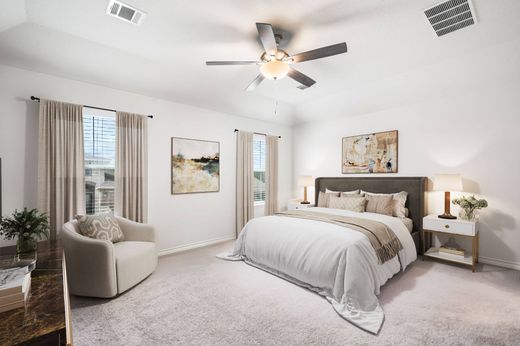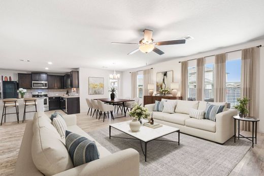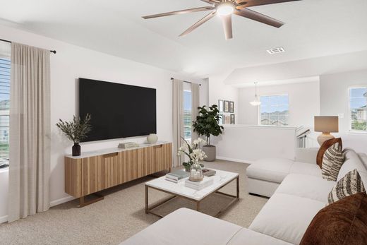 Ideally situated in the highly rated Schertz-Cibolo-Universal City ISD, this well-maintained home offers unbeatable access to JBSA-Randolph, Fort Sam Houston, downtown Cibolo’s shopping and dining, Crescent Bend Nature Park, and major highways including I-35 and Loop 1604. The spacious two-story layout features an open-concept design where the living, dining, and kitchen areas seamlessly connect, all with durable wood-look vinyl flooring. The kitchen is both stylish and functional, with granite countertops, a large island with breakfast bar, stainless steel appliances, abundant counter space, and a walk-in pantry. Upstairs, you’ll find all bedrooms, a generous game room, and a conveniently located laundry room. The private primary suite includes a soaking tub, separate shower, double vanities, and a large walk-in closet. Built-in bookshelves add charm and utility to the secondary bedrooms. Sitting on a corner lot, the home enjoys added privacy, a fully fenced backyard, covered front and rear porches, a two-car garage, sprinkler system, and a water softener.