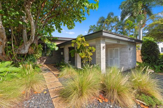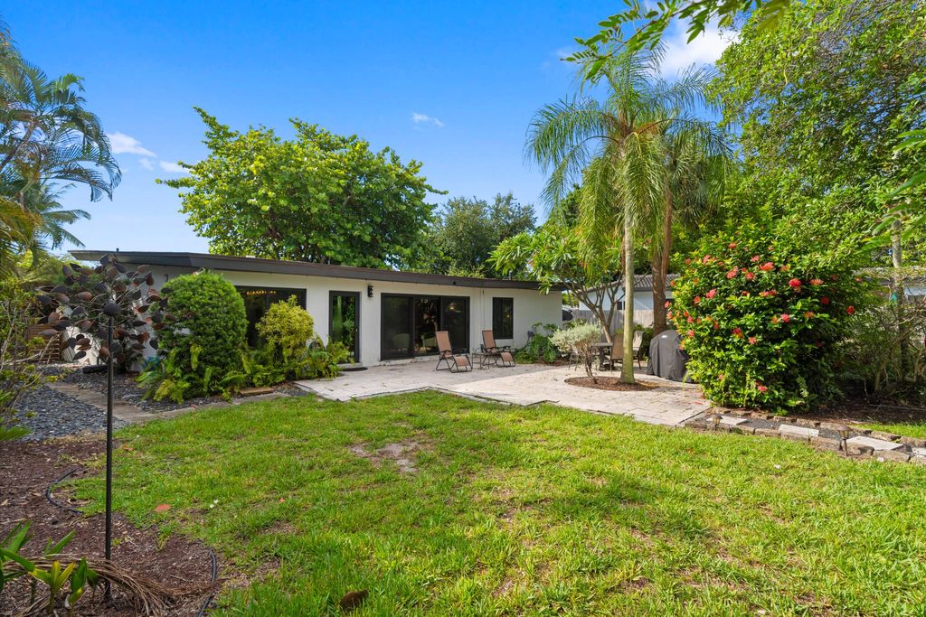 Discover your Mid Century "turn key" dream home in this stunning contemporary waterfront property, currently operated as a permitted Airbnb! This beautifully designed two-bedroom, two-bathroom residence features exquisite marble flooring and a modern chef's kitchen equipped with stainless steel appliances, perfect for culinary enthusiasts. Home features, newer roof, new dock, "Eurotech" impact windows and doors, along with modern smart home features and lighted accent wall, open living area, adorned with mid-century vaulted ceilings, allowing natural light to illuminate your surroundings. Home is being sold fully furnished. Bring your kayak or paddle board and enjoy touring Middle river, 11 Minutes to Wilton Drive and the shoppes of Wilton Manors, easy access to beaches and 95!
