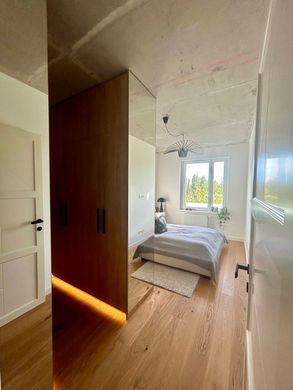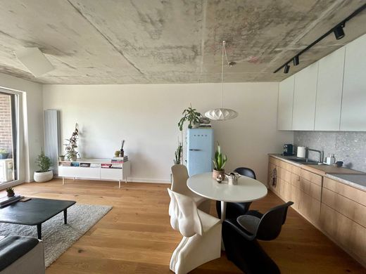 Spacious 62 sqm flat with a 9.24 sqm terrace overlooking a peaceful green area and park. This stylish property offers a well-thought-out layout, featuring a bright living room with an open-plan American kitchen and dining area. There are two bedrooms, one of which is currently used as an office. The flat includes custom-built wardrobes and modern finishes throughout. The main bathroom is equipped with a bathtub and toilet, while a second bathroom features a guest toilet and laundry area.