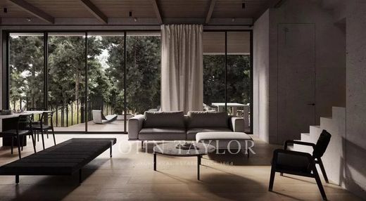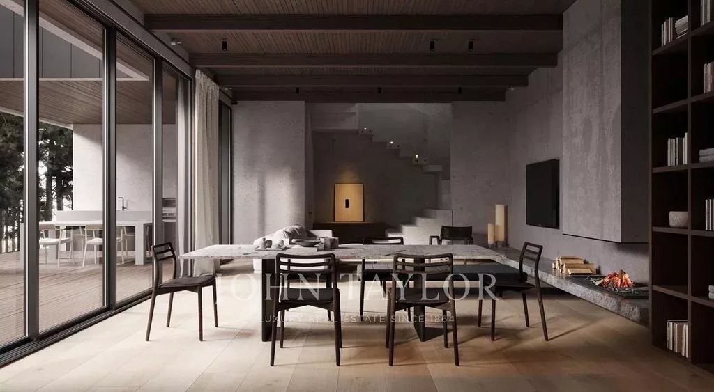 With 222 m² of internal space and a total area of 318 m² on a 555 m² plot, Dover Residence combines natural stone, timber, and glass to harmonize with its alpine surroundings. It features five bedrooms, four elegant bathrooms, underfloor heating, VRF air-conditioning, double-glazed thermal windows, and bespoke interiors from top European brands. Expansive terraces open to forest views, offering moments of serenity beneath the highland sky.