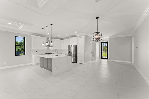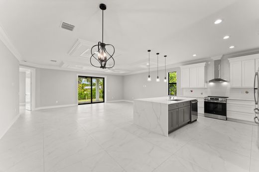 This thoughtfully designed 3 bedroom + den, 2.5 bath estate blends charm, quality, and convenience in one beautiful new build. Located just minutes from public boat ramps, Sandsprit Park and Port Salerno's waterfront dining, this home is the perfect blend of lifestyle and location. Inside, enjoy an open-concept design with quartz countertops, a waterfall eat-in island, wood cabinetry and luxury porcelain tile throughout. Tray ceilings, crown molding, recessed lighting and ceiling fans add elegance and comfort. Built for peace of mind and longevity with impact windows and doors, metal roof and stucco exterior. Relax on the elevated front or back patio with fresh coastal breezes. The oversized 10' garage door and large lot offer space for your boat, RV or future pool.