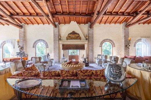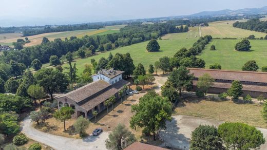 This splendid property, located on a plateau of rare beauty, extends across 30 hectares of flat land, ideal for organic farming, agriculture, or equestrian pursuits. Nestled in a captivating natural setting, it features a 19th-century building and rural structures built in the early 1970s by a renowned Bolognese architect, perfectly balancing aesthetics and functionality.