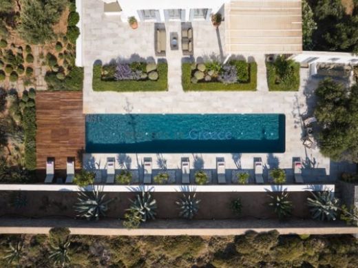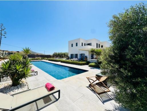 This magnificent 275 m² villa is located in the unspoilt region of Tsoukalias, Paros, on a spacious 6,000 m² plot. 15 minutes drive from Naoussa.