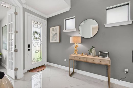 Welcome to this beautifully appointed 2018-built single family home located in the prestigious Fields at Gulf Stream Polo. This spacious 4-bedroom + office, 2.5-bathroom residence offers nearly 3,000 square feet of thoughtfully designed living space. The main level features sleek porcelain tile floors, an elegant office, and an open-concept kitchen that flows seamlessly into the living area with soaring volume ceilings. The gourmet kitchen is equipped with a large center island, walk-in pantry, and ample counter space--perfect for entertaining. Upstairs, you'll find a versatile loft along with all four generously sized bedrooms. Impact windows and doors throughout the home provide peace of mind and energy efficiency. Step outside to your private backyard oasis, where a south-facing fenced