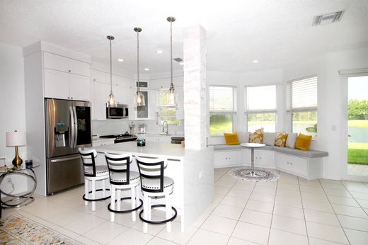 Beautiful furnished lake-front home features open concept floor plan, bright kitchen with stainless steel appliances, elegant breakfast nook, kitchen island and patio overlooking the lake. 2nd floor features 3 bedrooms 2 bath, French doors leading to relaxing balcony with amazing view of lake and breathtaking evening sunsets. Spacious primary bedroom suite includes office/study area, roman tub, dual sinks, and a window with more sunset views. Thoroughbred Lake Estates is a desirable gated community located close to shopping, dining and more. Available for seasonal rent.