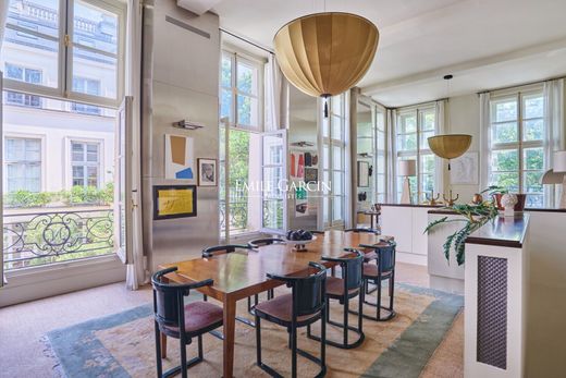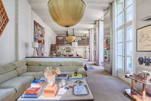 Located on the first floor of a magnificent 17th-century city mansion, this exceptional duplex apartment presents 181.90 sq.m of living area (145.30 sq.m Carrez law). Fully renovated by a renowned architect, it offers commanding views of the banks of the Seine. The first level comprises a large reception room backing onto a terrace of 20 sq.m, a living room, a kitchen equipped with high-end appliances (La Cornue), a dining room and a bathroom with toilet. This south-facing apartment has a ceiling height of 4.5 meters and also offers a mezzanine level accessible by a staircase, which could be used as a bedroom or office. On the ground floor, you will find an exceptional master suite with wood paneling and a bespoke dressing room, a large bathroom with shower and bathtub, and a separate WC. The magnificent outdoor terrace was created by a landscape architect. This exceptional property offers a perfect blend of art, design and historical charm. The building is served by an onsite concierge. The property is sold with a cellar and has the potential to be accessed through two independent entrances. Air conditioning. Condominiums of 20 units (No proceedings in progress). Annual expenses : 12432 euros.