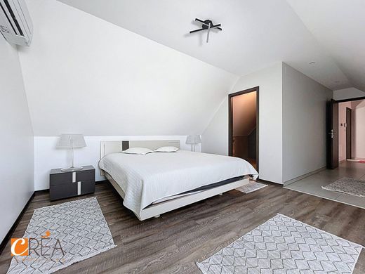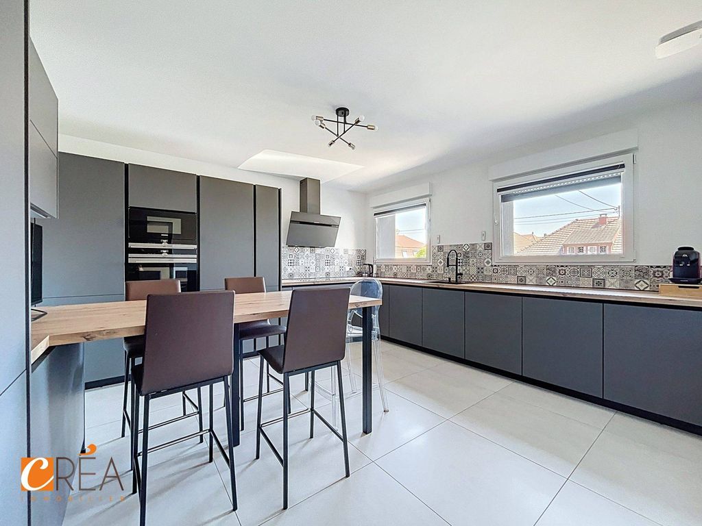 At the crossroads of Lutterbach and Pfastatt, this building enjoys a privileged location, close to transport, schools, shops, and motorways. The location is ideal for comfortable daily living, whether for a large family, two generations wishing to live together, or a rental project. Tram and bus stops are just a few minutes' walk away, facilitating travel to Mulhouse and the surrounding area, while the city center's amenities are quickly accessible. This rare property, with a total surface area of approximately 335 m², consists of two separate dwellings spread over two levels, each with its own access, annexes, and outdoor spaces. It is ideal for a two-family home, offering everyone their independence while remaining under the same roof. On the ground floor, an entrance hall leads to a first 67 m² one-bedroom apartment. This includes a fitted kitchen, a bright living room, a comfortable bedroom and a functional bathroom. It also benefits from a private garden of 129 m² located at the rear of the building, as well as a separate garage of 14 m². Upstairs, we discover a large duplex apartment with generous volumes, with a surface area of approximately 220 m². From the entrance, the living room seduces with its brightness and its opening to the outside thanks to large bay windows giving access to a south-facing terrace of 30 m². This level offers a modern kitchen fully fitted and equipped, with built-in appliances, numerous storage spaces and a central island, a first sleeping area composed of three bedrooms, one of which has an integrated wall cupboard, a bathroom with bathtub, a separate toilet and a storage room. On the upper floor, a mezzanine leads to three additional bedrooms, including a master suite with dressing room and private bathroom. A third bathroom, equipped with a laundry area, completes this level and offers optimal comfort for a large family. In addition, the duplex also benefits from a large 61 m² garage, located at the rear of the plot. From a technical point of view, the building was completely renovated between 2022 and 2023: new roof, complete structural repair, exterior thermal insulation, completely redone electrical and plumbing, and installation of underfloor heating. The whole offers an excellent level of services and does not require any work. This real estate complex, without co-ownership fees, is a real opportunity for an intergenerational living project or a secure heritage investment. Price: €682,500 (Price excluding fees: €650,000 / fees: €32,500) DPE C Fees included of 5% including tax payable by the purchaser. Price excluding fees €650,000. Energy class C, Climate class C Estimated average annual energy expenditure for standard use, based on 2021 energy prices: between €891.00 and €1,207.00. Information on the risks to which this property is exposed is available on the Géorisques website: georisques.gouv.fr.