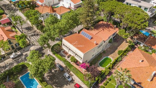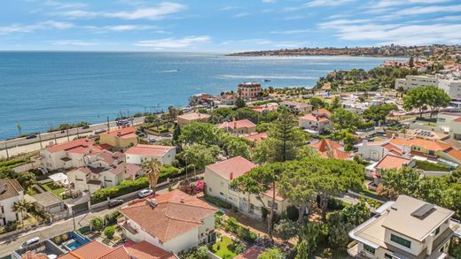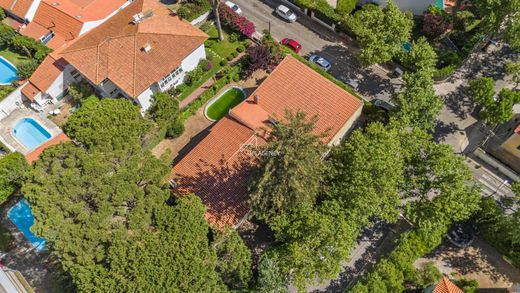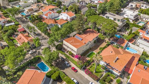 With a built area of 573 m² and situated in an exclusive residential area of São Pedro do Estoril, the property features a mature garden, swimming pool, and partial sea views.