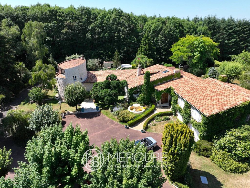 SOLE AGENT. In Charente. Nestled in the heart of a beautifully wooded 2.6-hectare enclosed park, you'll discover this property with undeniable charm. The main house boasts over 320 sq.mt of living space, tastefully decorated with high-quality materials. A small annex house stands at the foot of the vineyard. A superb pool area and large outbuildings complete the property.