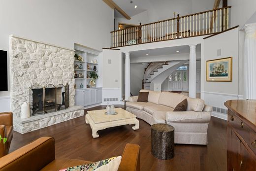 Presenting one of the most spectacular homes with the most iconic views overlooking three fairways of the Gary Player-designed Diamond Run Golf course! Only a few homes in western Pennsylvania have this panorama and changing scenery every season, only 11 1/2 miles from downtown Pittsburgh and minutes to Sewickley Village, North Hills shopping and entertainment, and the new Pittsburgh International Airport! This all-brick Londonbury home features a dramatic two-story foyer with a custom sweep staircase opening to a soaring 2 1/2 story great room filled with natural light. The tumbled marble stone and smooth marble hearth complement the beautiful hardwood floors. An entertainer’s dream, the large gourmet kitchen opens to dining and entertainment areas. One may retreat to a richly finished custom library with a box beam ceiling that also overlooks the course. The oversized, living and dining rooms feature 9-foot ceilings, beautiful wood doors, a built-in custom buffet, and a masonry fireplace. All bedrooms in this home are oversized and have wonderful ceiling and window details for comfortable living with a front and rear staircase. The finished terrace level has a beautiful built-in display cabinet in the billiard room as it heads into the expansive, custom-built bar area and TV beside its masonry fireplace. Four masonry fireplaces grace this residence. Brick piers with limestone caps hold the masonry-paved balcony that overlooks the newly added fire pit and seating area below. Golf course memberships are optional and available! Your new lifestyle awaits at 232 Alaqua Drive!