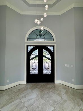 Enjoy the convenience and peace of mind that comes with this private pool home located in a double-gated community. Built in 2018, this custom-designed home has been updated with new light fixtures and custom paint. The home features a private wing dedicated to the Primary Suite and office, which includes an oversized bedroom with a tray ceiling and a sitting area that overlooks the pool. The double walk-in closet is equipped with custom shelves & drawers. The Primary bathroom is bright & airy, with double vanities & a zero-edge glass shower with pebble flooring.The open plan is ideal for hosting gatherings, with spacious dining, kitchen, and family rooms. Two guest suites are connected by a Jack & Jill bath. Step out onto the tranquil screened lanai to enjoy the free-form pool.