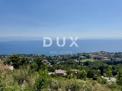 DUX in a rare offer presents a unique opportunity on the Opatija Riviera. It is a building plot measuring 1800m2 with a rarely seen panoramic sea view. The plot is located above the famous town of Lovran, near Opatija, a 4-minute drive from the town or the first beach uphill. The terrain configuration is gently sloping, which guarantees a view forever. The access is from the upper (northern) side of the future building, which allows for the creation of a quality garden, swimming pool and outdoor facilities on the property. There are beautiful villas in the vicinity of the plot, and the neighborhood has infrastructure for construction (water and electricity) as well as an asphalted driveway. It is important to emphasize the special peace that this private street has, and the panoramic view of the sea and the entire Kvarner Bay includes enjoying the view of the relief and roofs in the town of Lovran. An excellent opportunity to buy a special position on which one luxurious villa or two to three houses with solid gardens can be built. To arrange a visit to the property, call the agent with confidence - consultation in German is possible.