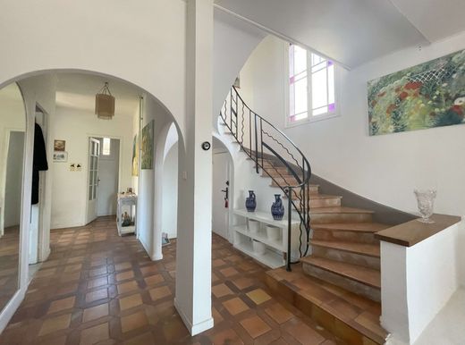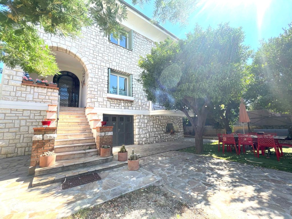 Very rare, not to be missed! Exceptionally well located in Nice West, in the heart of the residential district of Ferber, less than 5 minutes' walk from the Promenade des Anglais, the tramway, shops and amenities, a truly charming freestone villa, recently renovated, offering a very pleasant living environment, in a calm, green environment close to everything. On a plot of 437 m2 perfectly oriented South/West and arranged between fruit trees, summer lounge and outdoor living spaces, the Villa, with a total living area of approximately 210 m2, is composed as follows: - On the Ground Floor level (direct and independent access): a large closed garage and a 2-room apartment of approximately 44 m2 recently fitted out and new, comprising a hall, a bedroom opening onto a living room with fitted kitchen, a shower room and a separate WC - possibility of fitting out an additional room - ideal for seasonal rental, guest and/or young adult outbuilding or even professional use - On the 1st level of the building (main access by stairs leading to the entrance porch and its small adjoining terrace): on a living area of approximately 70 m2, there is an entrance hall opening onto a large and bright living room of over 40 m2, a bedroom/office, a spacious fully equipped kitchen and a separate WC - Upstairs (accessed by an elegant wrought iron staircase, naturally lit in the middle by a large stained glass window): on an equivalent living area of approximately 70 m2, there is access to 4 beautiful bedrooms (two of which open onto their south-facing balcony), a bathroom (with bath and shower), a shower room with WC and a dressing room. Solid and quality construction, very bright and largely open to the outside in all rooms, air conditioning recently installed on all levels, electric gate, very beautiful volumes with its 3m ceiling heights, marble and original solid wood parquet floors in the bedrooms in perfect condition, ... Turnkey property, immediately habitable, no major work required, land and house perfectly secure (recent alarm and fence), 300 m2 garden ideally positioned on the plot (between the gate and the entrance to the house) optimizing the usable surface area of the land and offering a majestic arrival to the building... Unique opportunity!